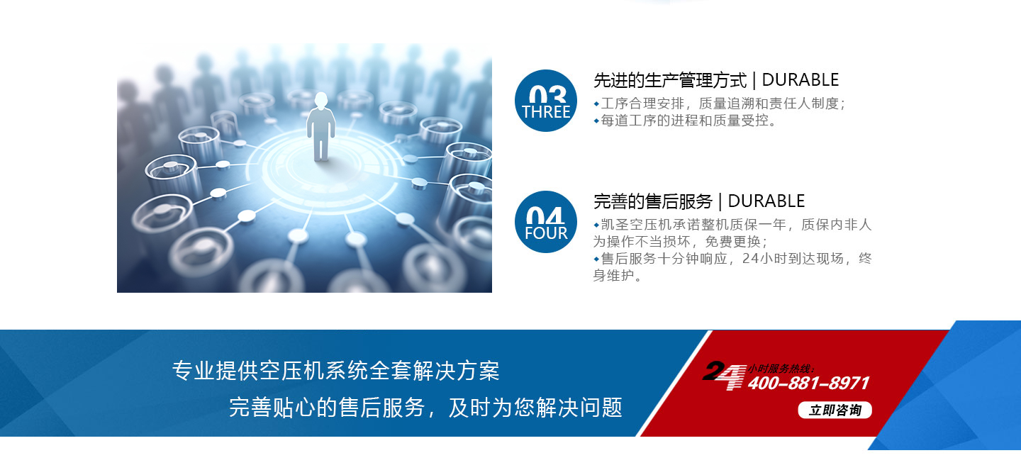 合肥凱圣節能科技有限公司是從事永磁變頻螺桿壓縮機系統的設計、制造、安裝、調試、維修與一體的公司。 在多年的螺桿空壓機研發與推廣歷程里,凱圣聚集和培養了大量壓縮機技術設計和管理人員,迅速發展成為集研究、生產、銷售、服務等環節為一體、嚴格按照標準執行的企業,公司成立開始,即以滿足客戶的實際需求為己任,大力開拓國內外節能型空壓機市場,并始終保持創新精神,全力研發更為節能的螺桿式空壓機,努力站在空壓機節能領域的排頭位置。 應用范圍:公司產品廣泛應用于機械、輕工、紡織、食品、石油、化工、冶金、礦山、電力、城建、醫學研究和科研等各行業中,將為節約能源做出巨大貢獻。公司秉承“信譽至上,...